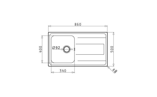 • Размер на мивката: 860 х 500 мм