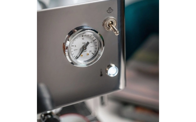 • Кафемашина за еспресо и капучино с черен стоманен корпус и компактен дизайн. Манометър на помпата, превключватели със светодиоди за всяка функция на машината, за перфектно еспресо дори у дома.