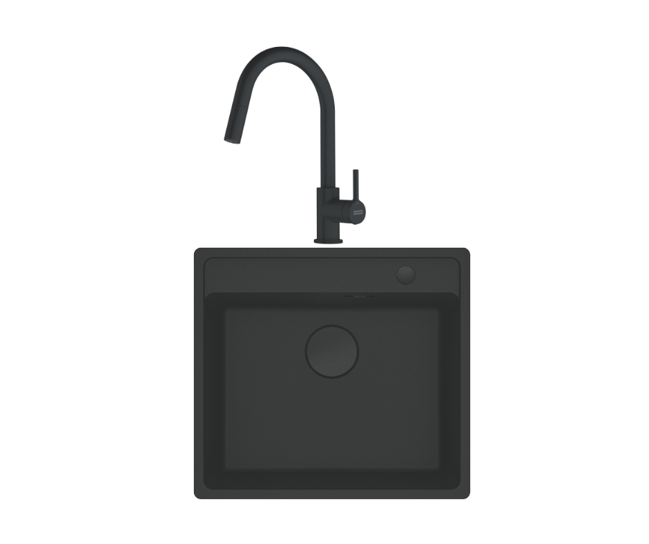 - Перфектно съчетание – мивка и смесител в един стил и цвят (черен мат)