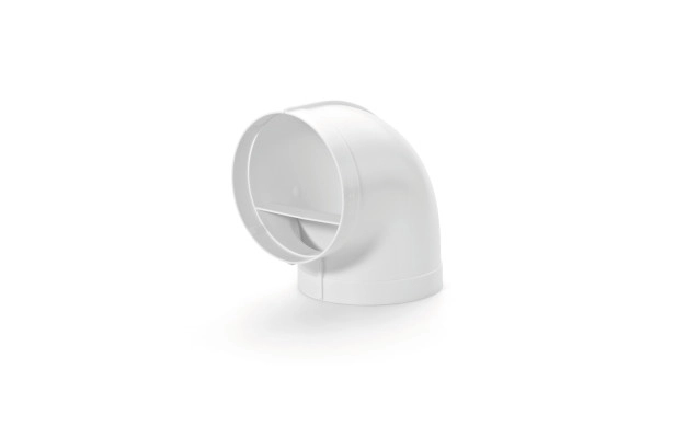 • Ниски загуби от извивката, благодарение на вградено насочващо крило.За свързване с кръгли тръби от двете страни.