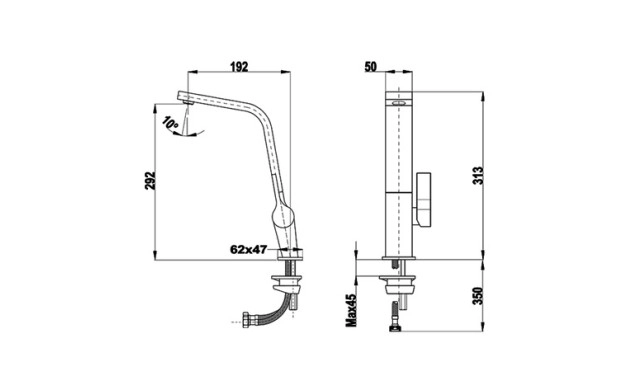 • Плосък въртящ се чучур – елегантна визия и удобство при миене на съдове и пълнене на високи тенджери.