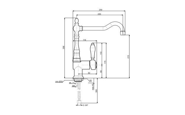 Отвор за смесителя: 3,5 см