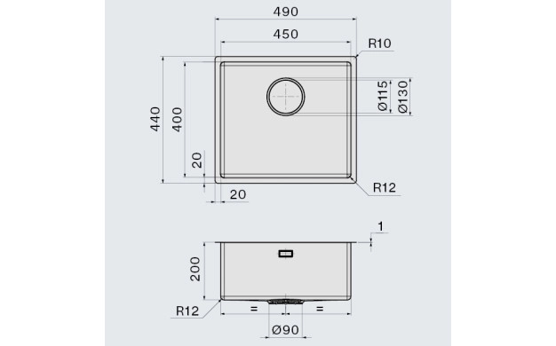 Мивка за под плот Falmec Como 45 – AISI 304, R12 ъгли, купа 450×400×200 мм
