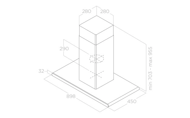 С издължаване на формата и покриване на по-голямо пространство аспираторът е в перфектна комбинация от стил, изящество и технологично изпълнение. Основното тяло на аспиратора е едва 3 сантиметра дебело, което предоставя една естетическа лекота допринесена и от съчетанието на неръждаема стомана с черно или бяло стъкло. Моделът е оборудван с двигател специално проектиран, за да предоставя необходимо високо налягане, ефективност и обслужване там където най-много се нуждаем от свеж въздух.