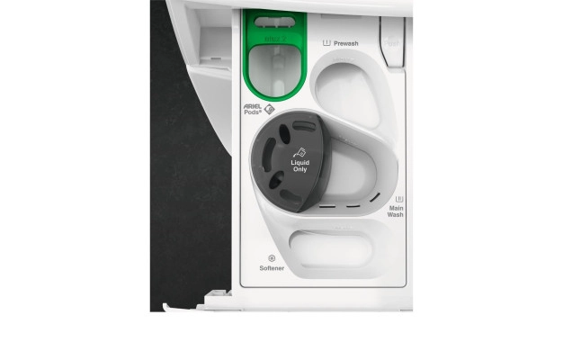 UniversalDose е уникално чекмедже, разработено за капсулите PODS®, което използва специални струи вода за размекване, пробиване и пълно разтваряне на капсулите, като ги активира 60% по-бързо отколкото вътре в барабана. Гарантирано премахва петната при студено пране и за 1 час.