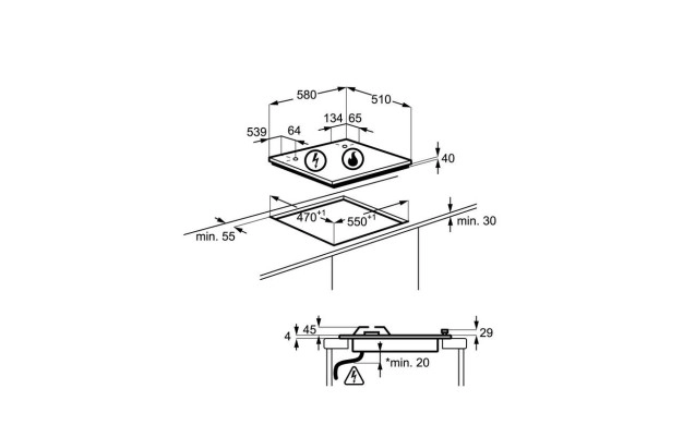 • Размери за вграждане мм (ВхШхД): 40x550x470