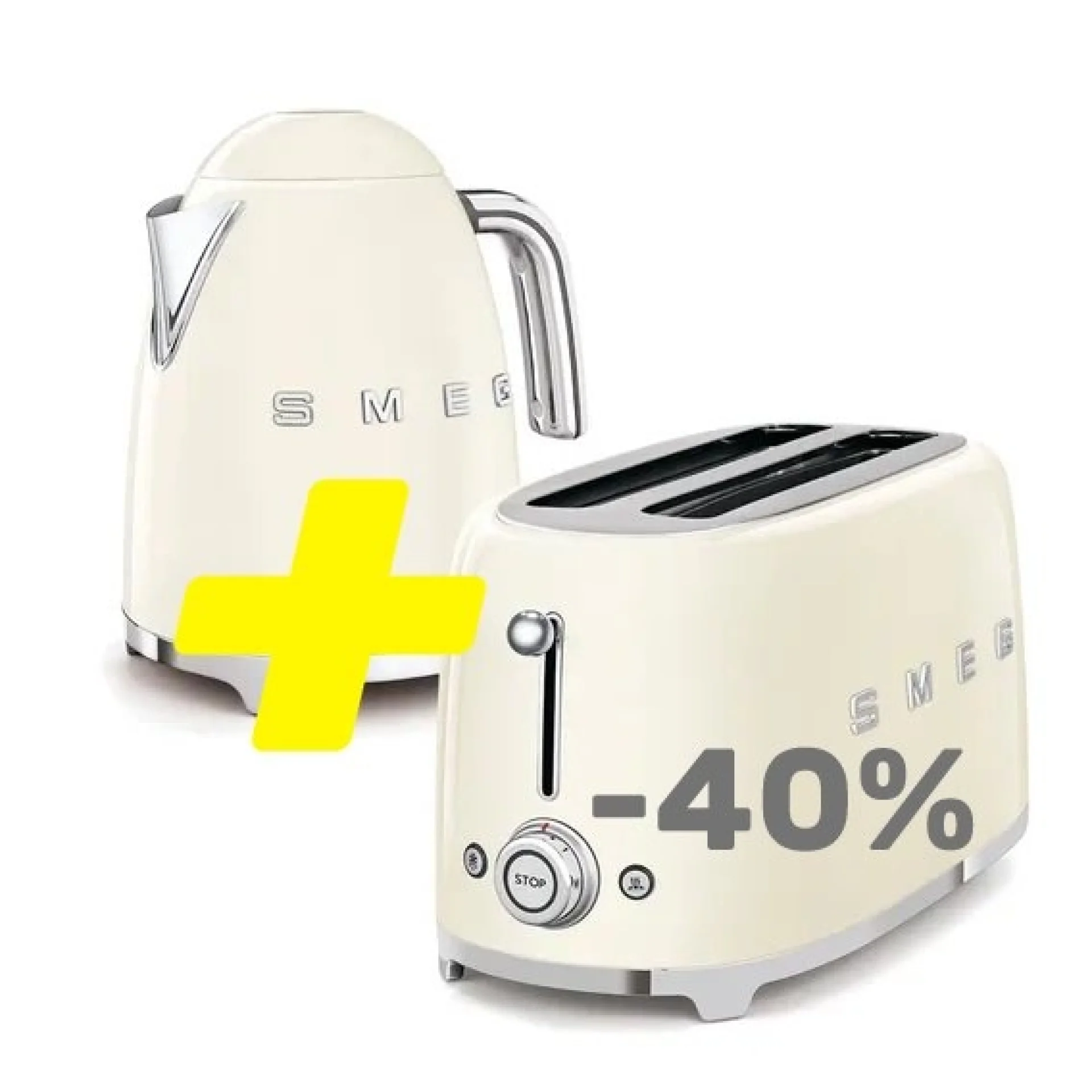 Промо комплектът Smeg COMBO CREAM е идеалното съчетание между стил, функционалност и автентичен ретро дизайн. В него са включени два от най-популярните уреди на италианския бранд Smeg – термокана SMEG KLF03CREU и тостер SMEG TSF01CREU в елегантен кремав цвят.