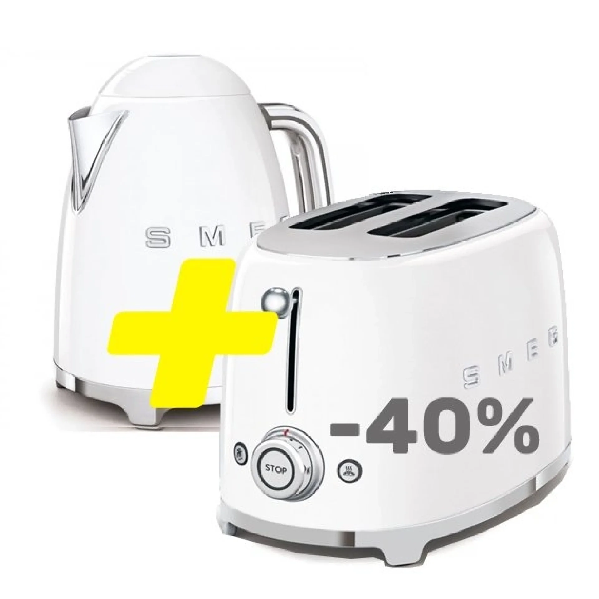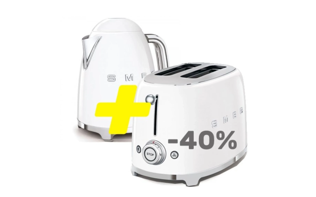 Smeg COMBO WHITE съчетава два емблематични продукта на италианския бранд в изчистен **бял** цвят: термокана SMEG KLF03WHEU и тостер SMEG TSF01WHEU. Класическият 50’s Style дизайн и модерните функции правят комплекта идеален за всяка стилна кухня.