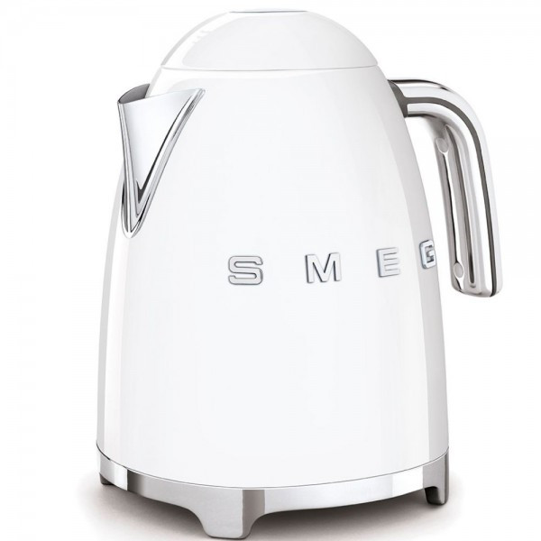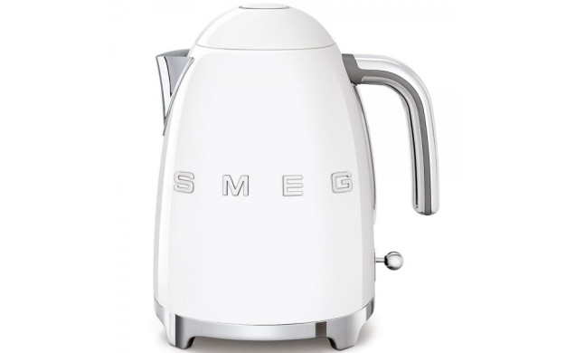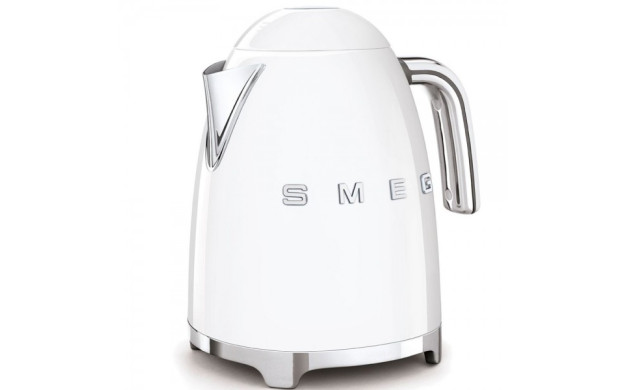 • Термокана SMEG KLF03WHEU – капацитет 1,7 л, автоматично изключване при 100°C, скрит нагревател, филтър против котлен камък, ергономична дръжка и антихлъзгаща се основа.