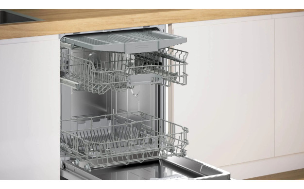 Bosch SMV2HVX06E е съдомиялна за пълно вграждане от Серия 2, проектирана за домакинства, които търсят надеждност, лесно управление и перфектни резултати при всяко измиване. С ширина 60 см и капацитет до 14 комплекта съдове, моделът комбинира доказаното немско качество на Bosch с модерни функции като ExtraDry, интелигентна свързаност Home Connect и гъвкава вътрешна организация на кошниците. Идеален избор за стилни кухни, при които уредите остават скрити зад мебелни фронтове, а дизайнът е хармоничен и минималистичен.