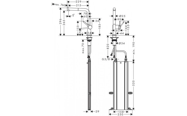 • Кутия sBox за плавно и тихо движение на шлауха в шкафа под мивката, дължина на шлауха 76 cm
