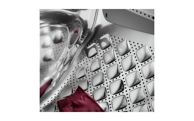 Новият дизайн позволява на дрехите да се плъзгат гладко благодарение на наподобяващата малки възглавнички повърхност и подобрената обтекаемост на преградите за повдигане. Тънък филм от вода покрива дупките на барабана по време на пране. Осигурявате на Вашите тъкани още по-нежно третиране при пране.