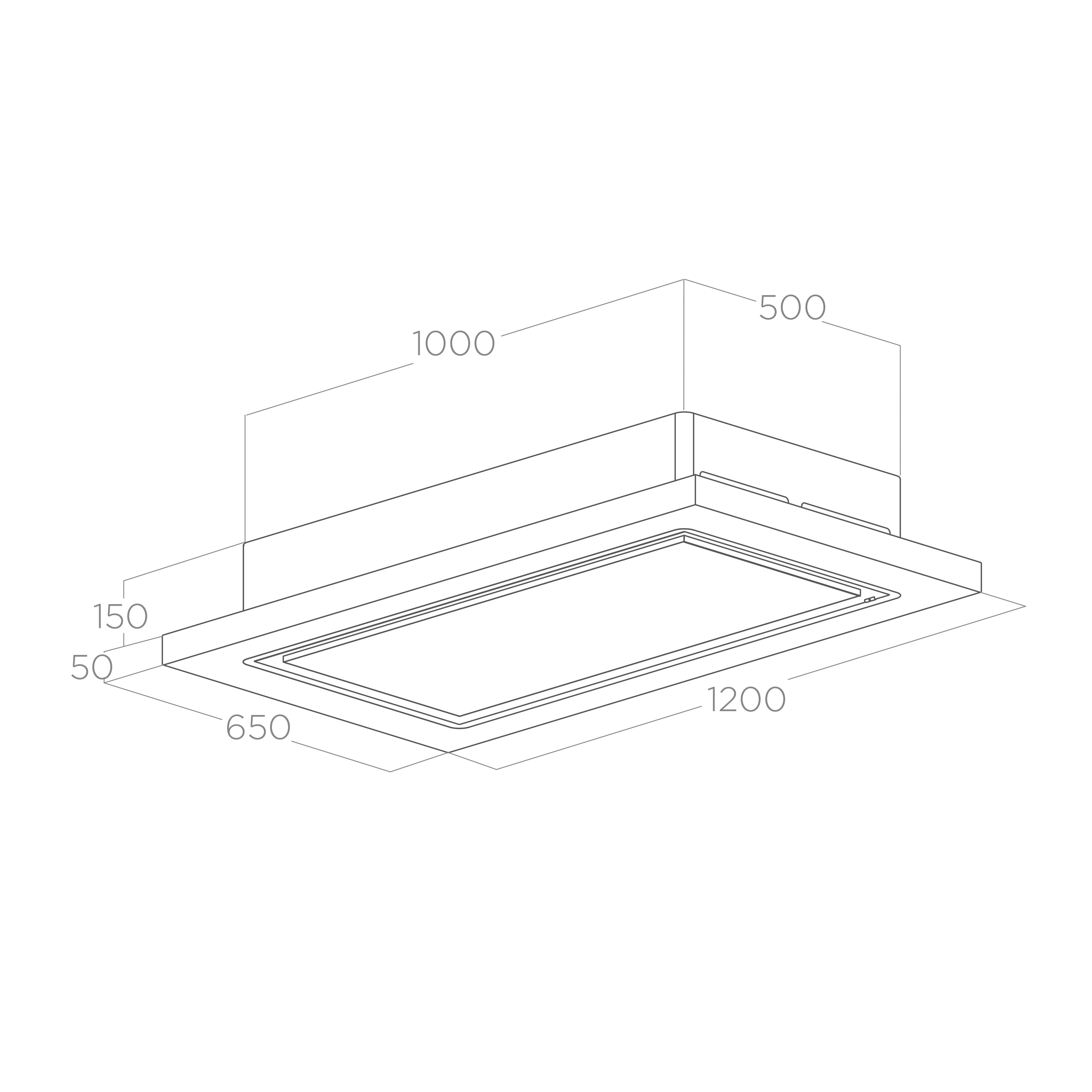 Размерът 120 x 65 см позволява аспираторът да стои внушително и стилно над кухненския остров, без да изглежда натрапчиво. Той придава завършен, премиум характер на кухнята и е особено подходящ за проекти, в които дървото и топлите естествени повърхности играят важна роля.