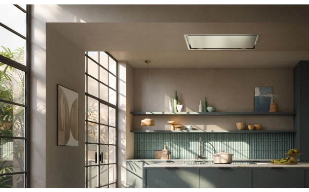 FALMEC NUBE EVO 90 е невидим и ефективен таванен аспиратор за модерни, минималистични пространства. Монтира се запълно в равнината на тавана и оставя свободата да изберете собствено осветление според интериора. С периметрално засмукване, електронно управление (3 + 1), дистанционно и Auto Mode (Dialogue), NUBE EVO 90 съчетава висока ефективност и тиха работа. Предлага се както за отвод, така и за рециркулация с регенерируем филтър Carbon.Zeo.
