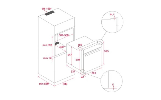 Размери външни (В×Ш×Д) 595 × 595 × 537+22 мм