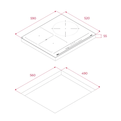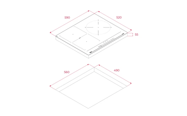 Размери за вграждане (Ш×Д×В) 560 × 490 × 51 мм
