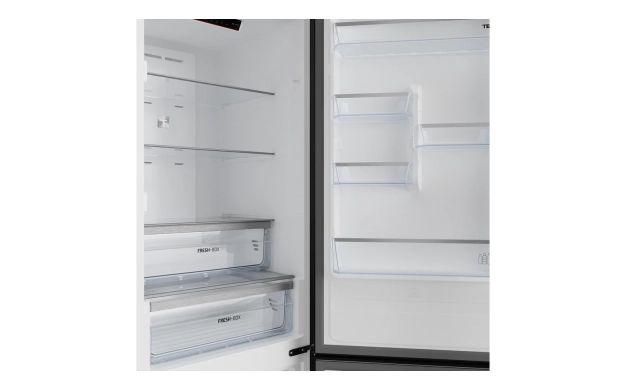 Teka RBF 44630 BK (черен) е елегантен свободностоящ комбиниран хладилник, съчетаващ модерна Total No Frost система, равномерно охлаждане с AirFlow и два обемни чекмеджета FreshBox за дълготрайна свежест на плодовете и зеленчуците. С височина 188 см, ширина 59.5 см и дълбочина 63 см, моделът е оптимален за градски кухни и семейства, които търсят максимална практичност в компактен формат. Черното изпълнение превръща уреда в стилен акцент, а тихата работа и намалената консумация подкрепят ежедневния комфорт и устойчивия начин на живот.
