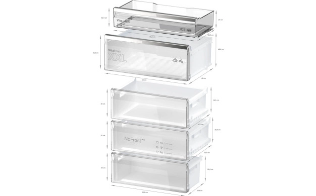 • VitaFresh XXL <0°C>: хладилник, който запазва свежестта на храната по-дълго благодарение на по-големите чекмеджета с гъвкав контрол на температурата.
